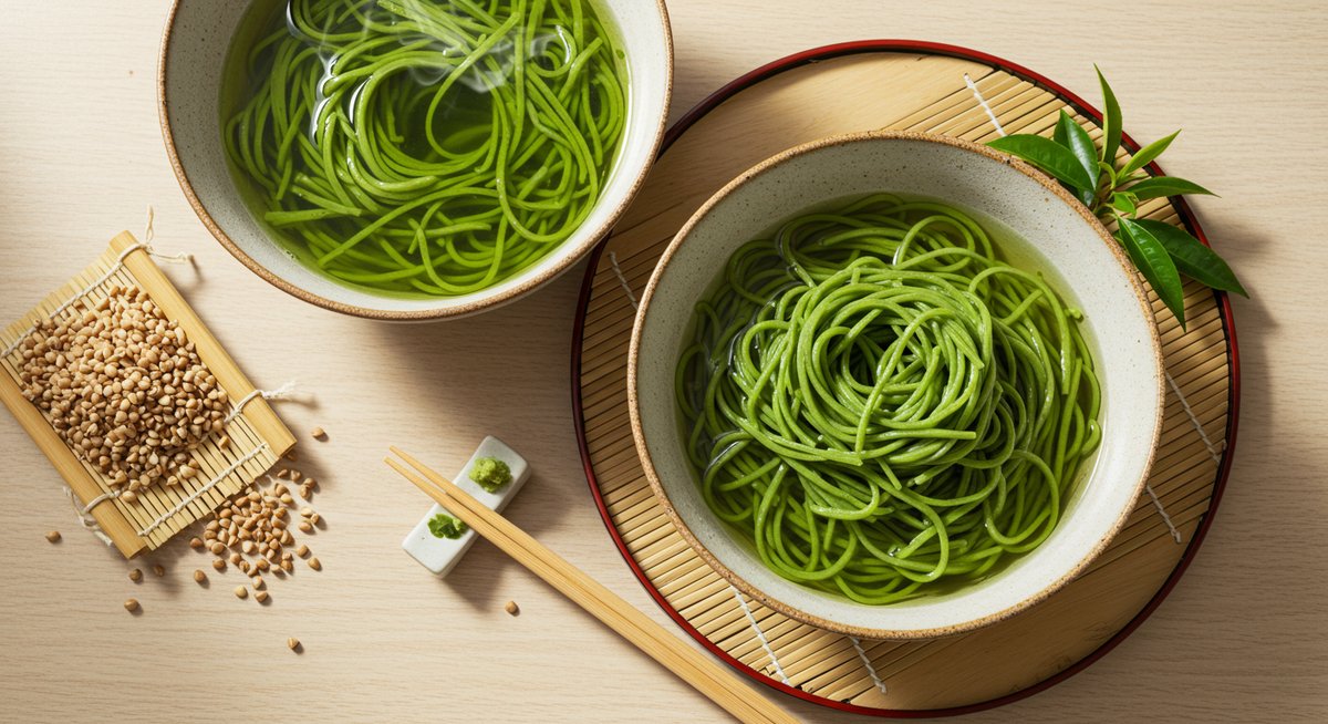 茶そばは小麦との配合が比較的多めで滑らかな食感になりやすく、のどごしが良いタイプが多いです。抹茶成分が加わることで少し粉っぽさが緩和され、冷たいざるそばなどでの爽やかさが際立ちます。