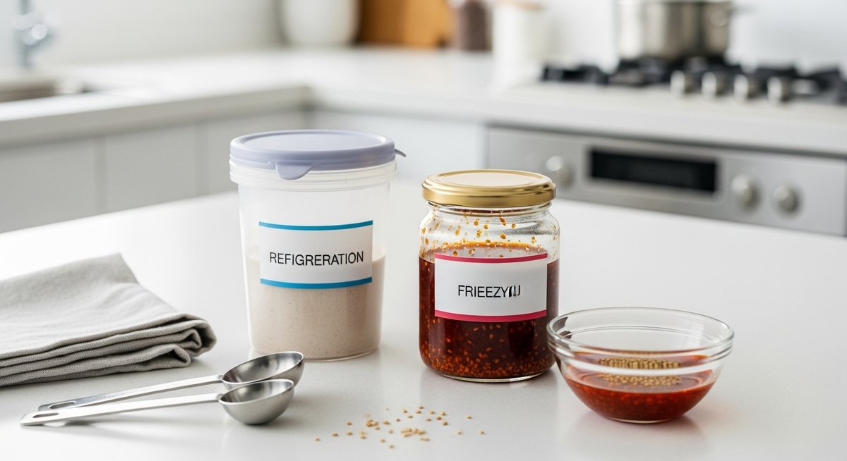 家庭で作ったチー油をすぐ使う場合は冷蔵保存が便利です。清潔な耐熱容器やガラス瓶に入れ、蓋をしっかり閉めて冷蔵庫の奥に置くと目安は3〜4週間ほどもちます。冷蔵庫のドア付近は温度変動が大きいため避けてください。