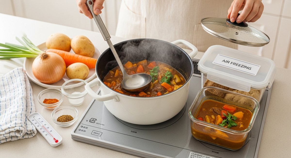 冷凍保存では、カレーはおよそ1か月程度を目安にすると良いでしょう。冷凍により細菌の活動はほぼ停止しますが、風味や食感は徐々に落ちるため長期保存はおすすめしません。冷凍する際は小分けにして平らに冷やすと解凍が速くなり、品質の維持にも役立ちます。