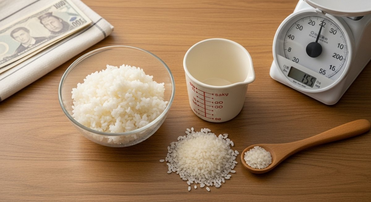 正確に量るならデジタルのキッチンスケールが便利です。グラム単位で測れる機種を選べば誤差が少なく、冷ご飯や炊き上がりの重さもそのまま測れます。計量カップは手軽ですが、米の粒の状態や詰め方で差が出るため補助的に使うと良いでしょう。