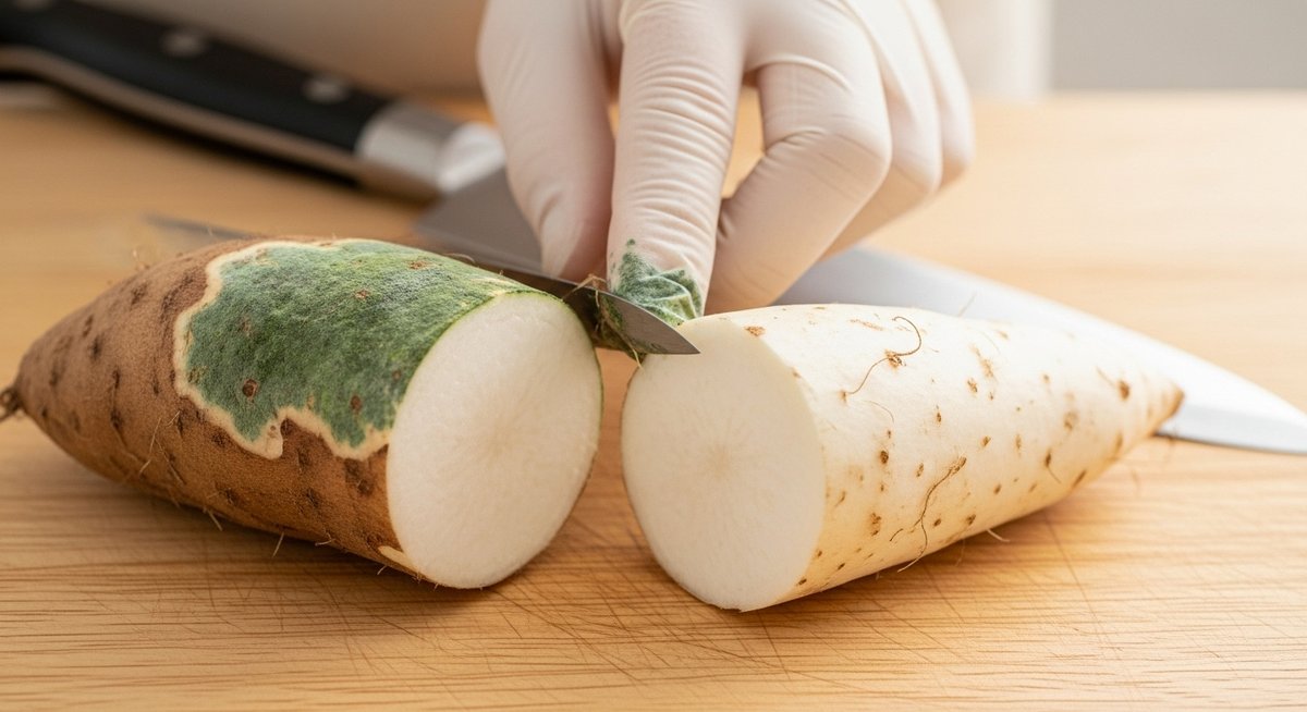 長芋に緑のカビが見つかったら、まず状態をよく観察して表面だけか内部までかを確認してください。表面だけであれば余裕を持って切り取り、器具は必ず消毒してから使い続けます。内部に広がっている、においやぬめりがある場合は廃棄を検討してください。