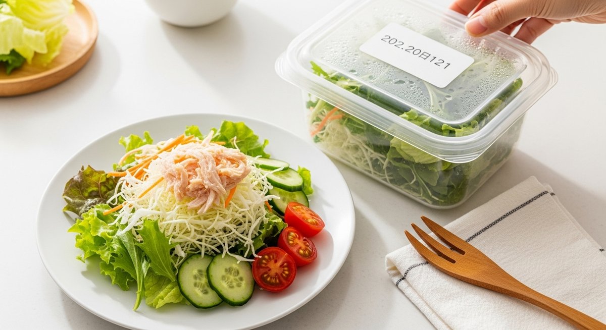 冷凍は安全性の面では一部効果がありますが、解凍後の食感劣化が顕著です。麺は水分が出てぼそぼそになり、野菜はシャキシャキ感が失われます。どうしても保存期間を延ばしたい場合は、具材とドレッシングを分け、麺だけ軽く冷凍する方法を試すと幾分ましです。