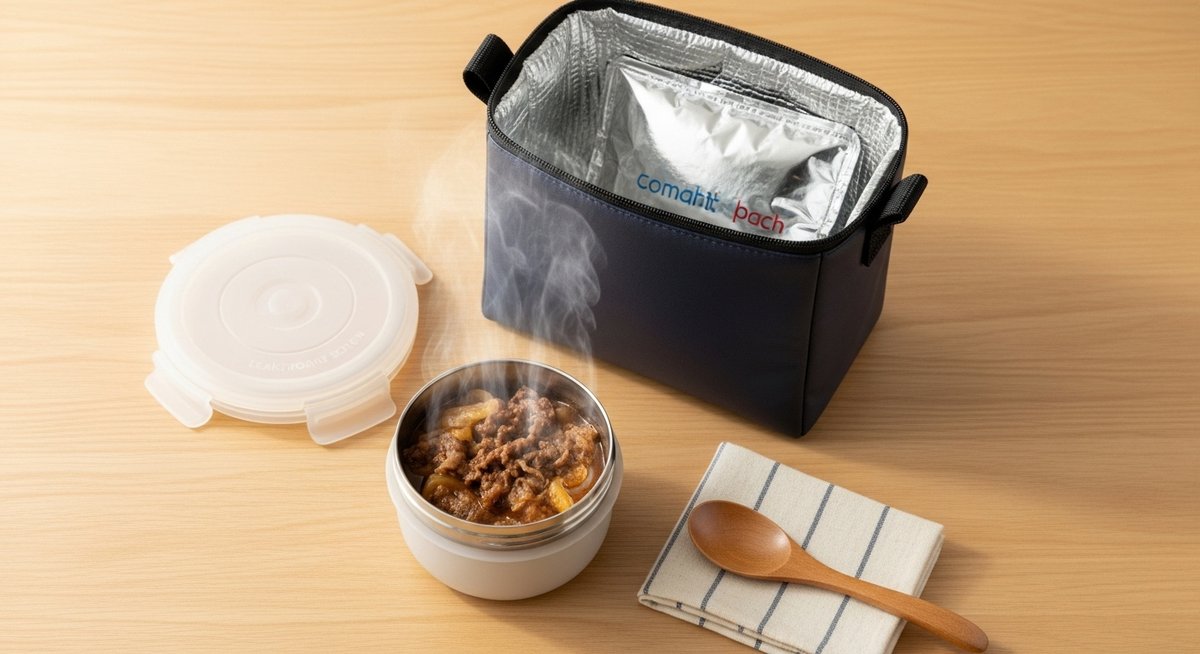 まず温かさを保つために保温力のある容器を選び、熱湯で予熱してから詰めるようにしましょう。漏れの心配がある場合はフタの閉まりを二重にチェックし、バッグ内で横にしない工夫をします。味の面では水っぽくならないようにとろみをやや強めに調整し、具はやや大きめに切ると食感が失われにくくなります。